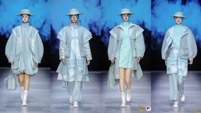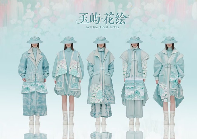 获奖作品《玉屿·花绘》灵感源于中国传统文化中“玉”的温润气韵与“花”的自然绘影,将古典意象转化为极具当代感的服装廓形。在面料选择上创新运用了一系列环保科技面料,展现了设计师对可持续设计理念的自觉践行。